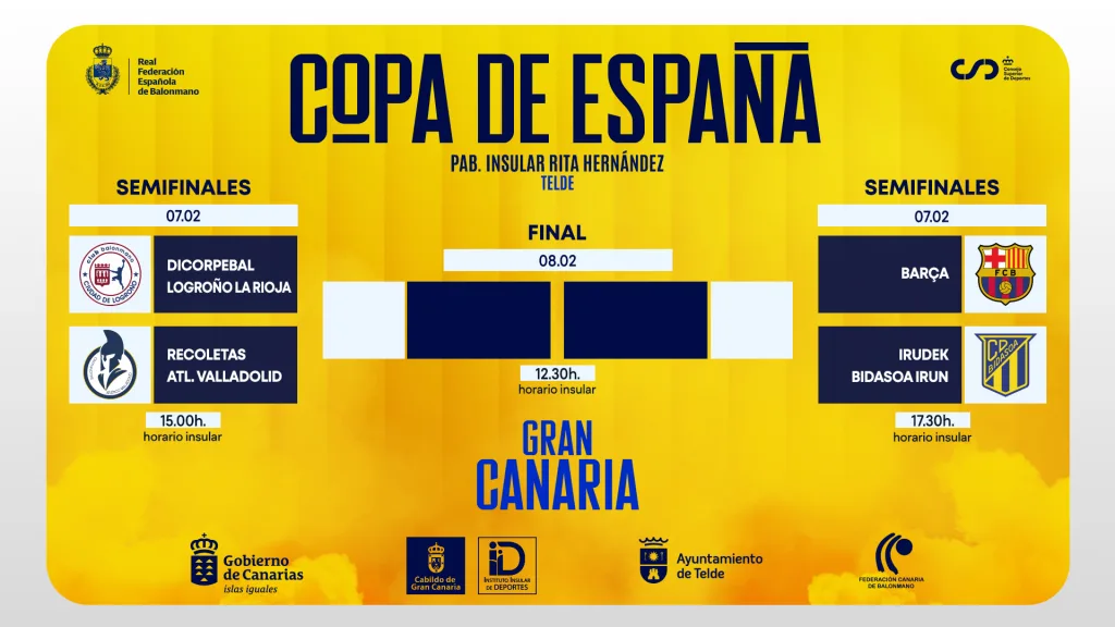La gran final de la Copa de España se celebrará el domingo 8 de febrero, a partir de las 12:30 horas (horario insular), enfrentando a los vencedores de las semifinales en la lucha por el título.