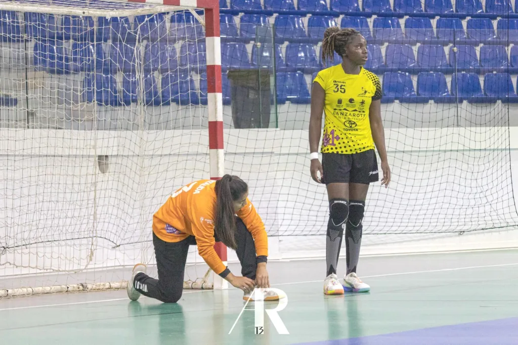 Pero Puerto del Carmen había olido la sangre que aprecia, la de los contraataques, una faceta positiva en el juego, además de la garra mostrada en el final. Made Cortez extendía sus alas doradas y la grada vibraba (16-18, min.9), pero Carballal reaccionaba con dos goles consecutivos. El susto del partido llegaba en el min. 19:35 cuando Grete Damora, intentando atrapar una pelota esquiva en ataque, caía lesionada (20-23).